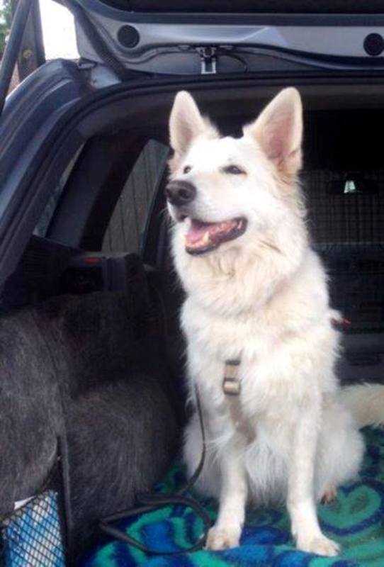 Destiny, meine fast 7 jĂ€hrige weisse SchĂ€ferhĂŒndin mit Papieren, sucht aufgrund schwerer Krankheit und Trennung ihrer Menschen ein neues aktives Zuhause.